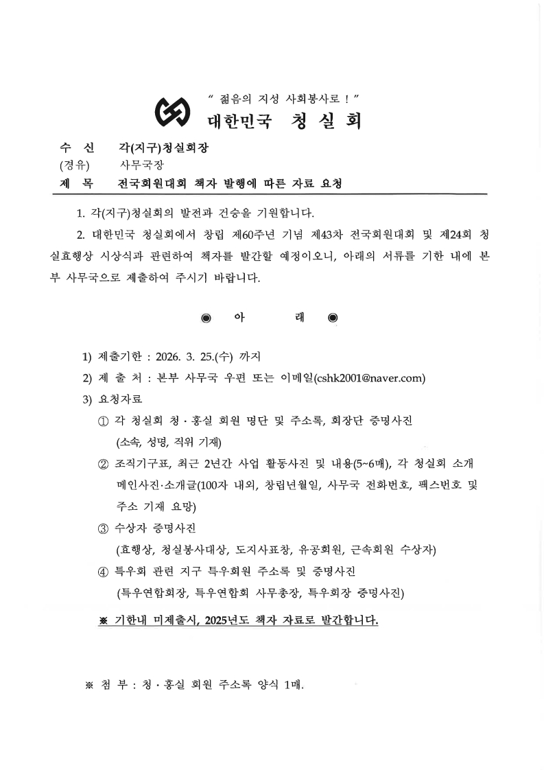 전국회원대회 책자 발행에 따른 자료 요청