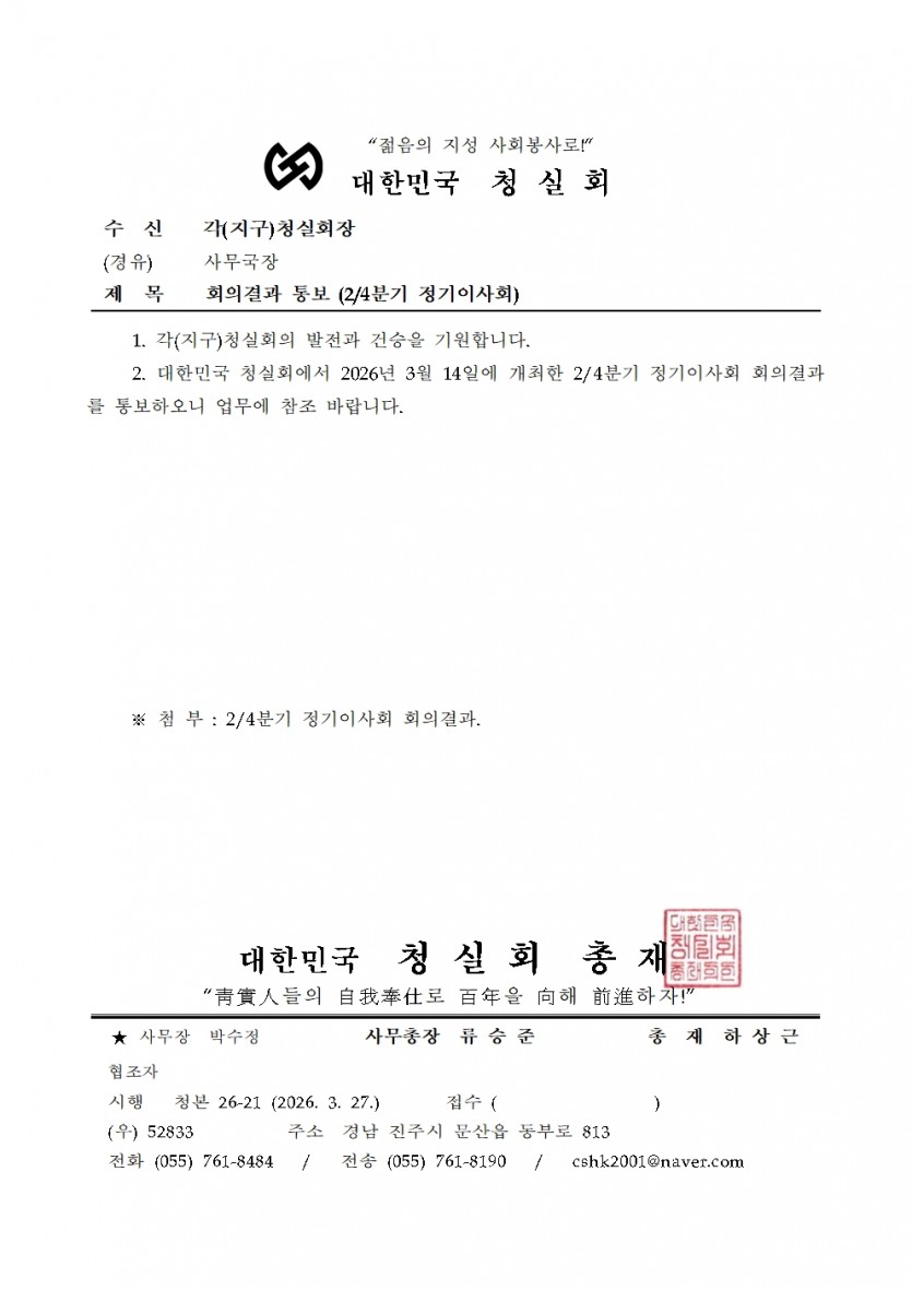회의결과 통보 (2/4분기 정기이사회)